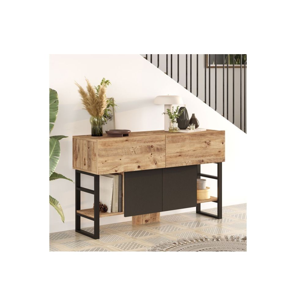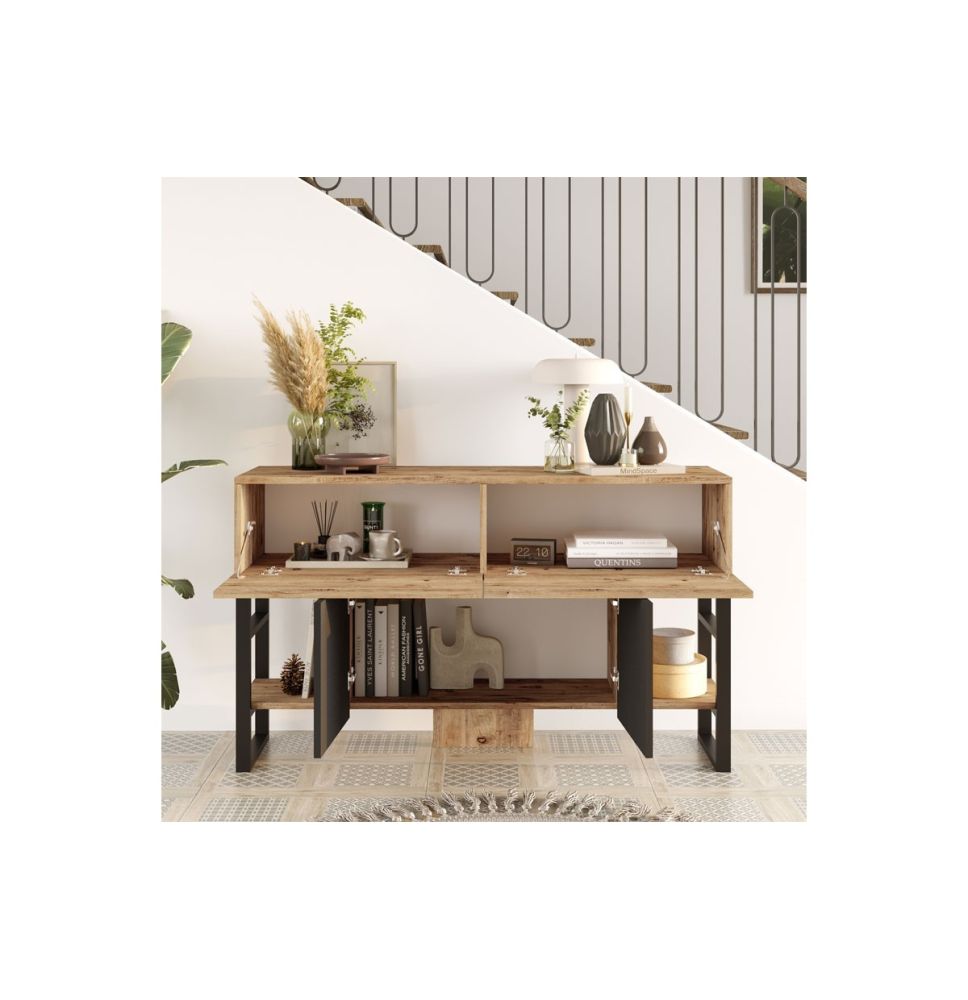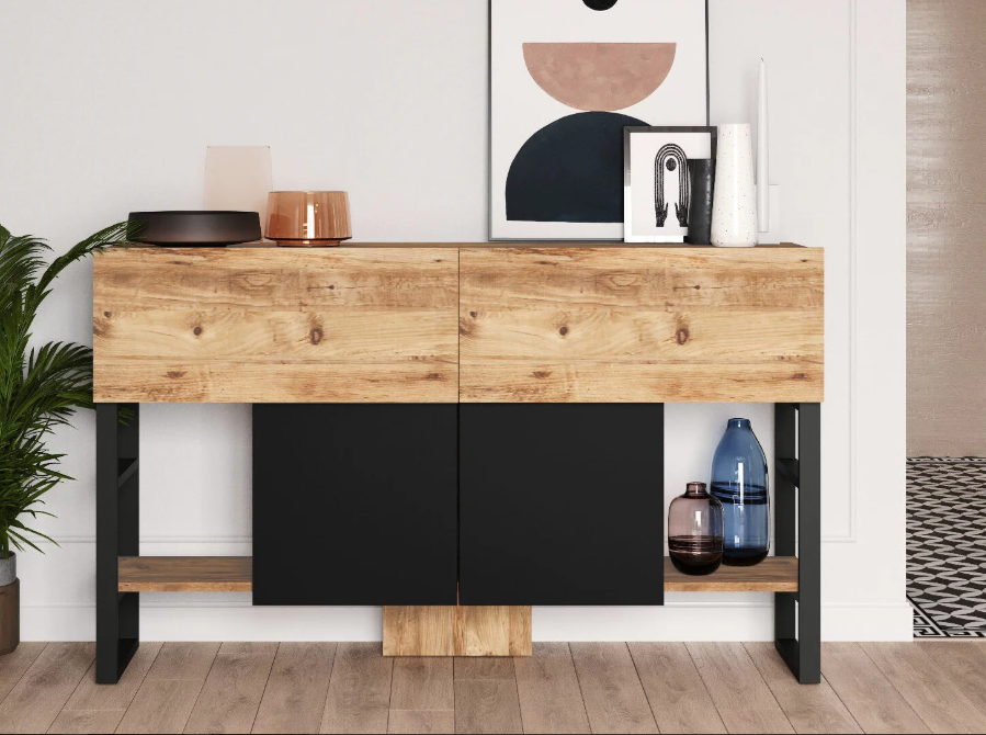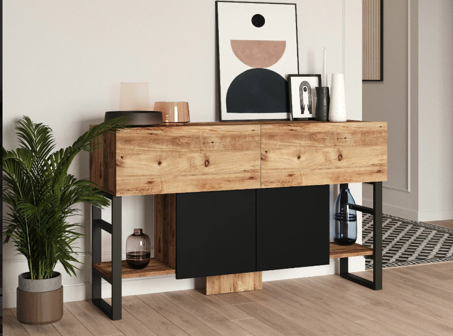 Estilo Versátil: Disponible en un atractivo color negro-natural, este aparador se adapta fácilmente a una variedad de estilos de decoración, desde el más clásico hasta el más contemporáneo, añadiendo un toque de sofisticación a cualquier espacio.