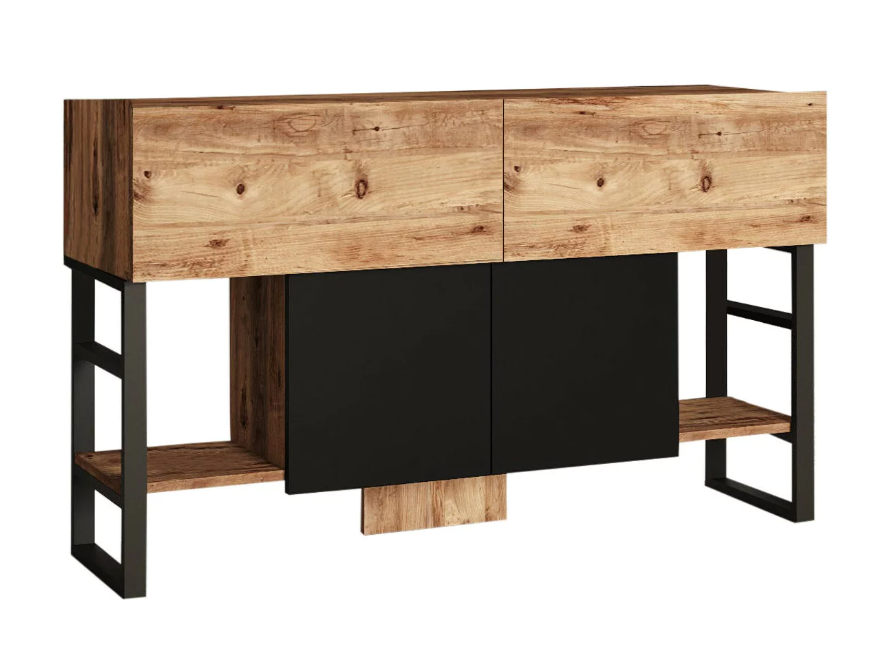 Diseño Moderno Natural-Negro con 4 Puertas – 139x43x83cm – Elegante Almacenamiento para Comedor