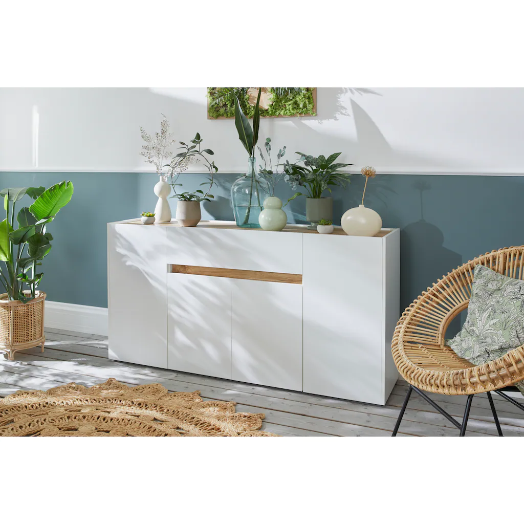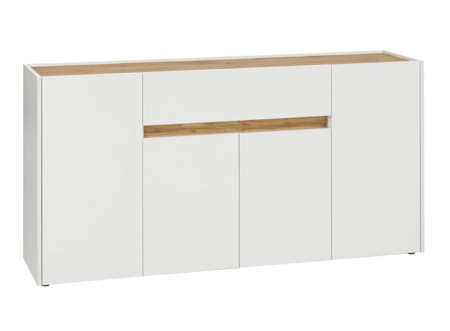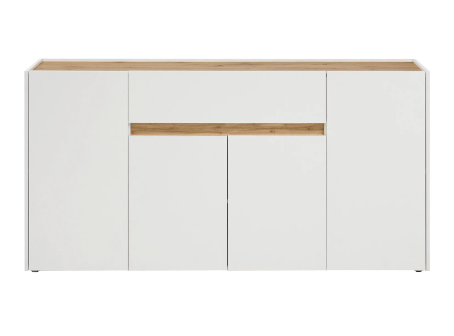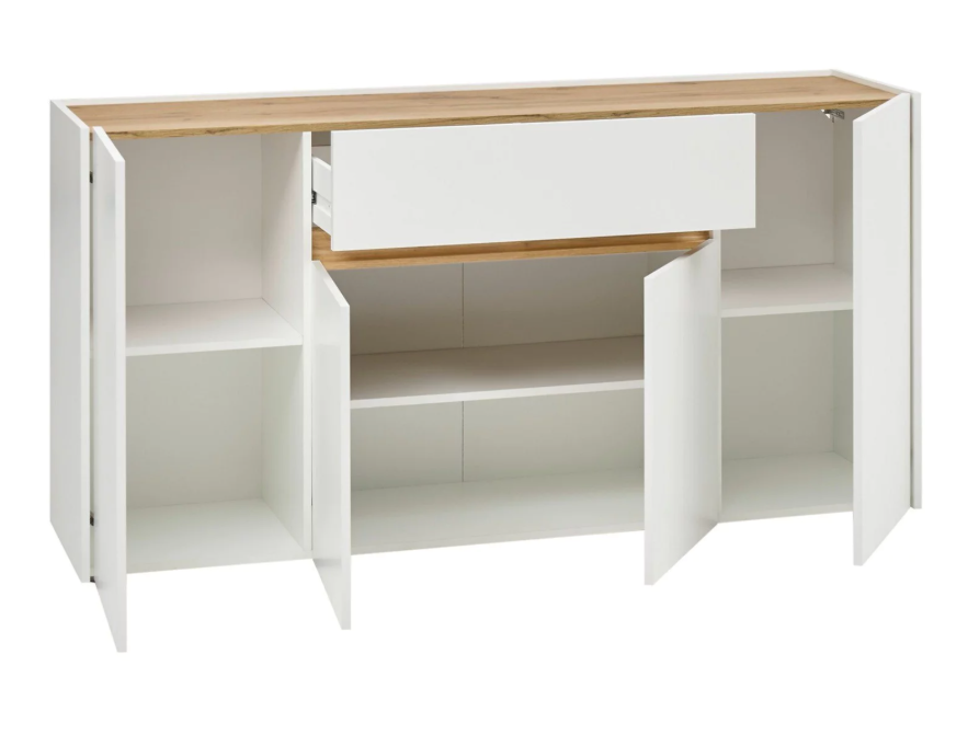 Con 4 puertas, el aparador proporciona amplio espacio de almacenamiento para libros, dispositivos multimedia y otros artículos. La robusta superficie es ideal para exhibir objetos decorativos, marcos de fotos o plantas. También se puede usar como mueble bajo, armario auxiliar, etc. Gracias al tablero de gran calidad, este aparador está diseñado para durar.