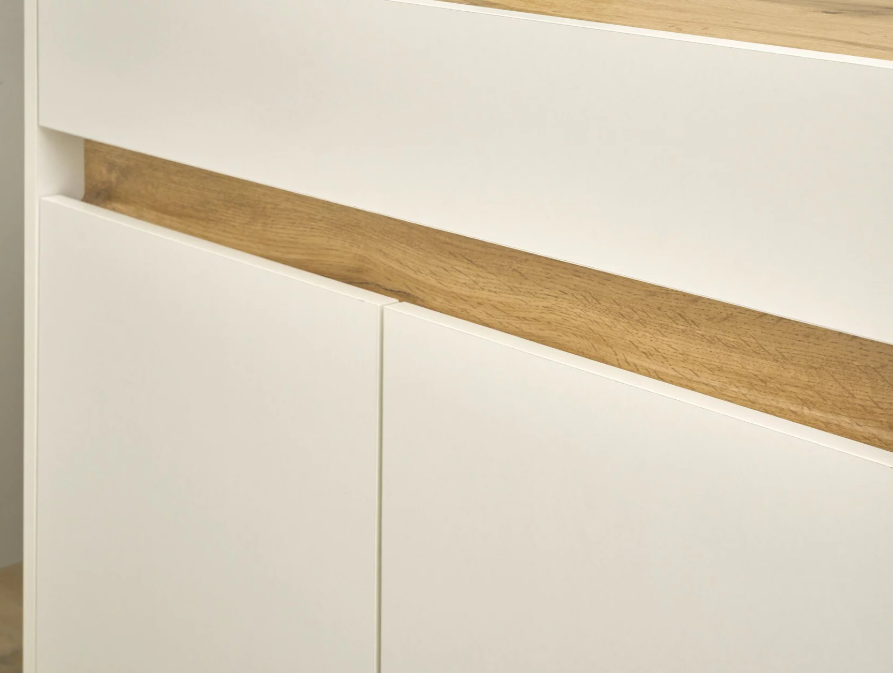 El acabado en Roble y Blanco no solo aporta un aspecto moderno y limpio, sino que también es altamente resistente al desgaste diario. Este color atemporal y elegante se integra perfectamente en cualquier ambiente, desde el más clásico hasta el más moderno.