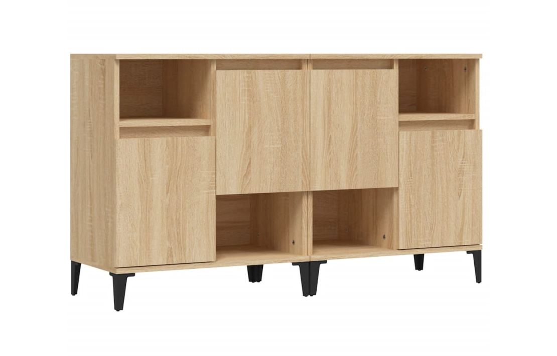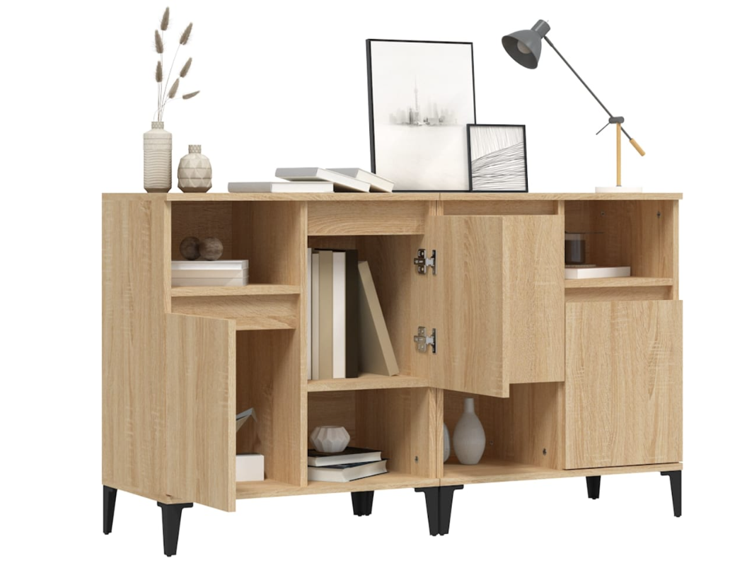 Con 4 puertas y 4 estantes abiertos, el aparador proporciona amplio espacio de almacenamiento para libros, dispositivos multimedia y otros artículos. La robusta superficie es ideal para exhibir objetos decorativos, marcos de fotos o plantas. También se puede usar como mueble bajo, armario auxiliar, etc. Gracias al tablero de gran calidad, este aparador está diseñado para durar.