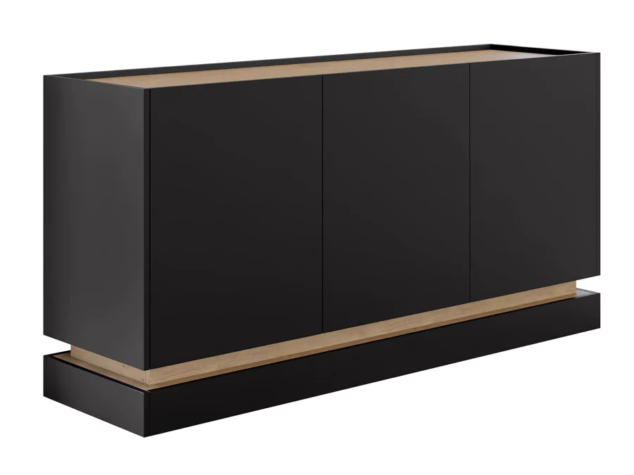 Con 3 puertas, el aparador proporciona amplio espacio de almacenamiento para libros, dispositivos multimedia y otros artículos. La robusta superficie es ideal para exhibir objetos decorativos, marcos de fotos o plantas. También se puede usar como mueble bajo, armario auxiliar, etc. Gracias al tablero de gran calidad, este aparador está diseñado para durar.