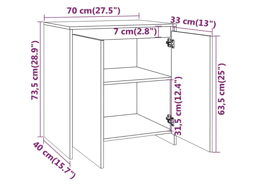 - Dimensiones del aparador con puertas: 70 x 41 x 75 cm (ancho x profundo x alto)