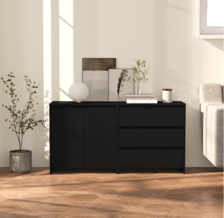 Aparador Moderno de 2 Cuerpos en Negro: Elegancia y Funcionalidad en un Solo Mueble