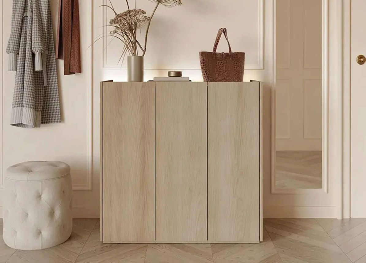Renueva tu sala con nuestro hermoso Aparador recibidor. El cual combina su estilo con la que hoy en día todos buscamos. Podrás decorarlo de una manera que tu habitación luzca extremadamente bien, está diseñado para transformar el espacio bajo la escalera en áreas de almacenamiento funcionales. Su diseño cálido en roble y la iluminación LED integrada crean un ambiente refinado, mientras que su estructura bien pensada ofrece una gran capacidad de almacenamiento.
