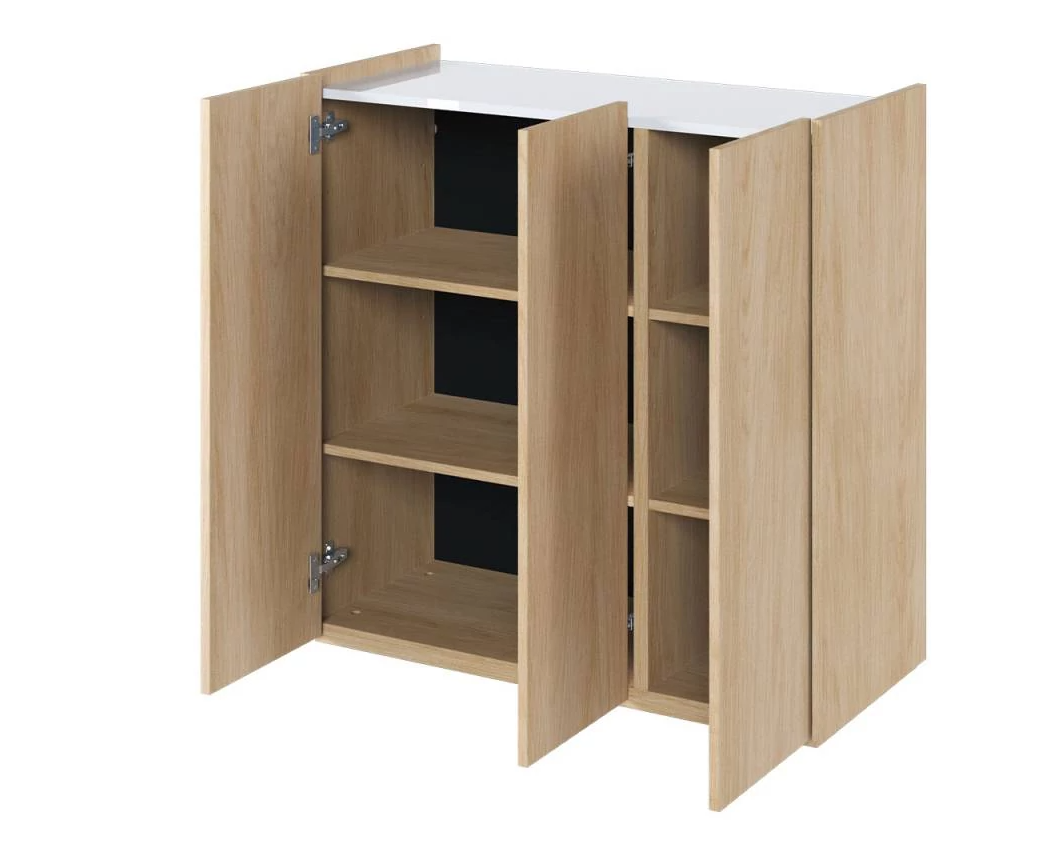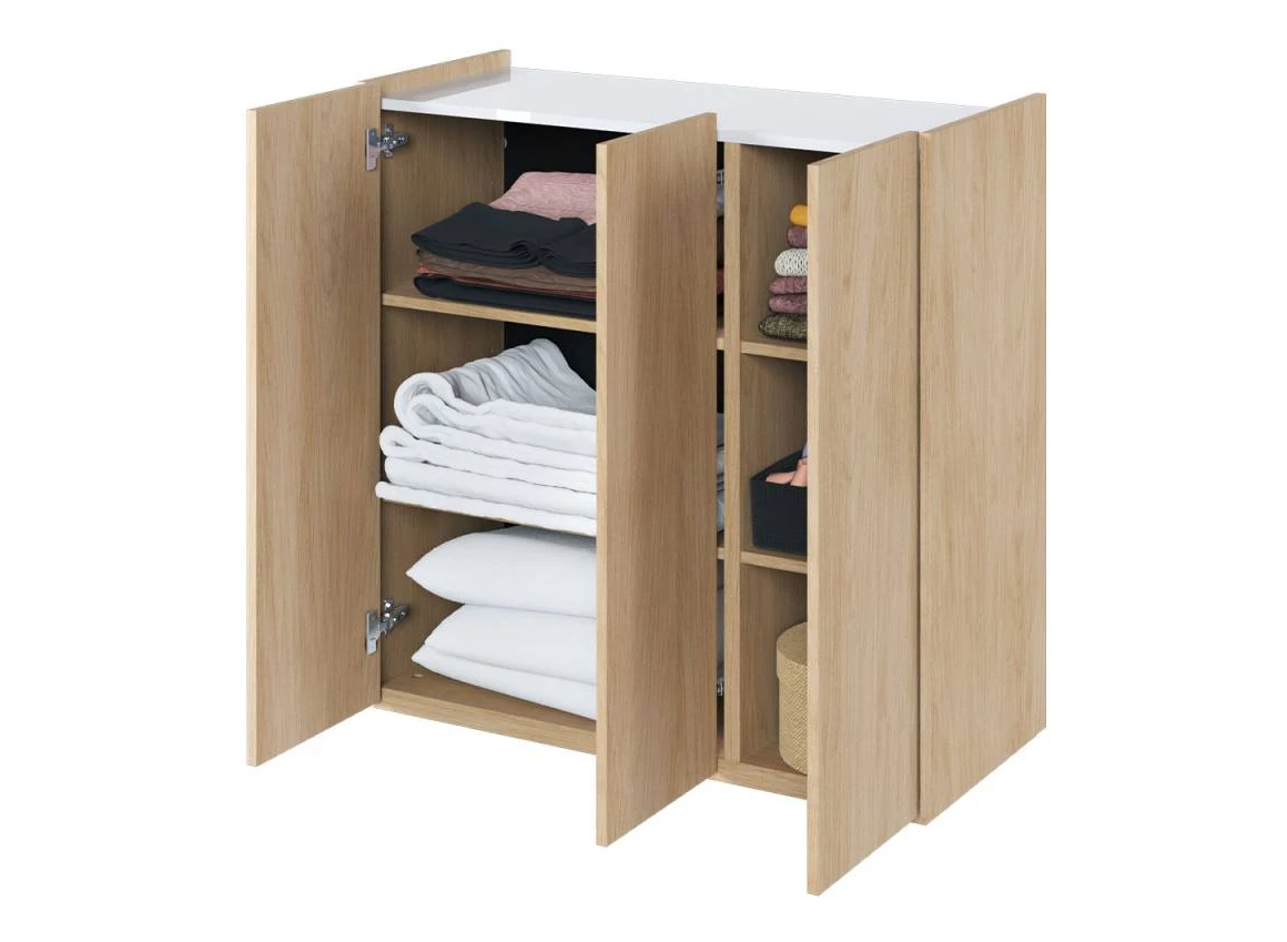 Gracias a sus 3 puertas podrás disfrutar de un acceso suave y fácil a todo lo que necesites. Las puertas abatibles, por su parte, permiten un acceso cómodo al interior del mueble, donde las divisiones internas te ayudan a mantener todo en orden.