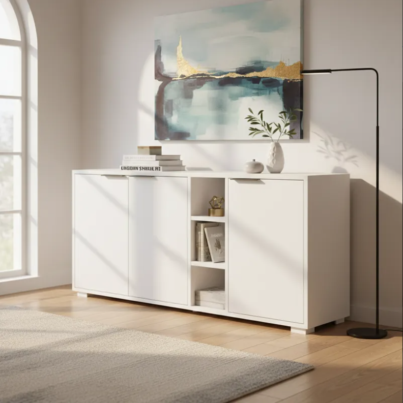 Aparador Moderno de 3 Puertas en Color Blanco: Elegancia y Funcionalidad en un Solo Mueble