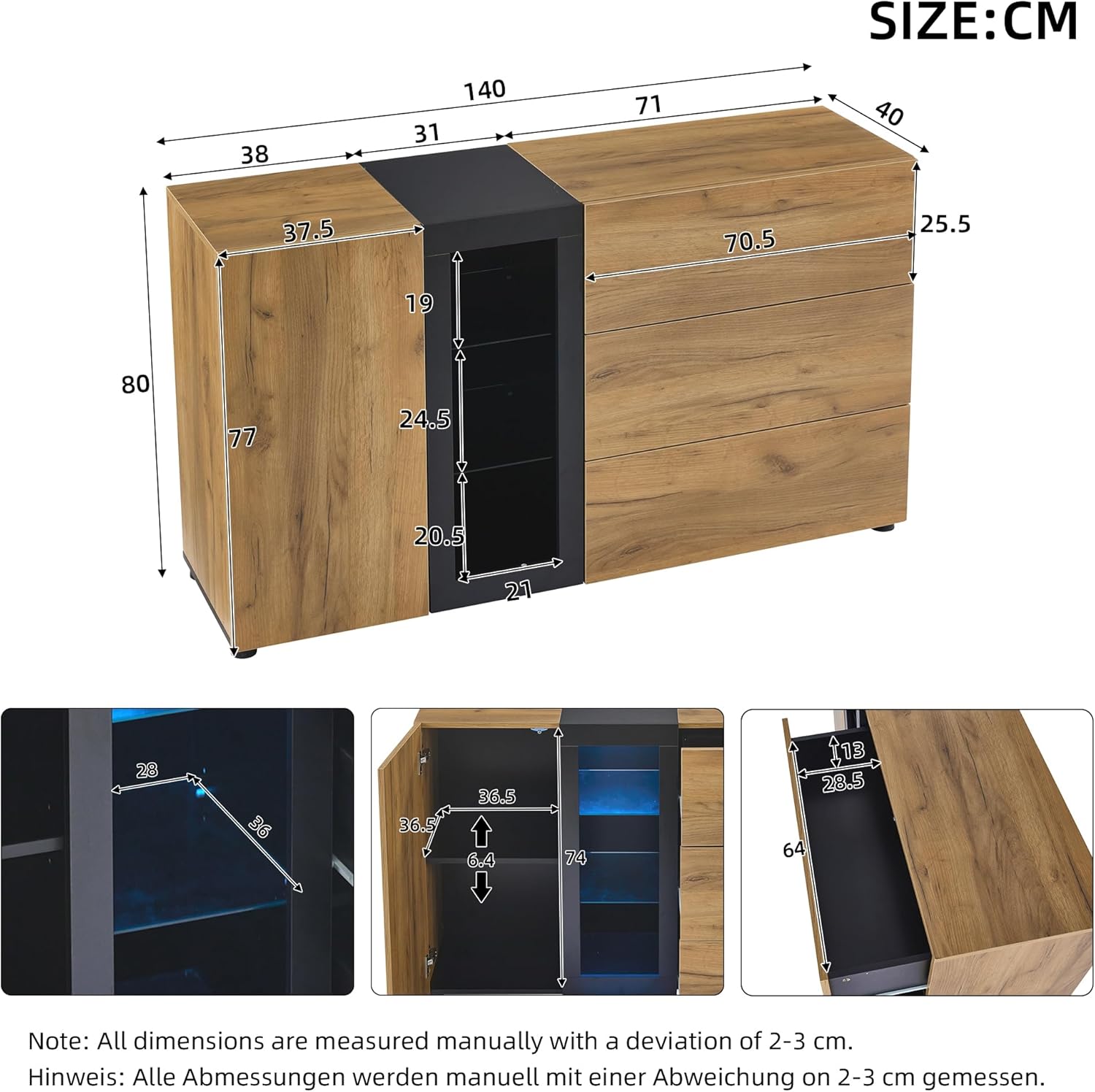 Con unas medidas de 80 cm de alto, 140 cm de ancho y 40 cm de profundidad, este aparador es lo suficientemente compacto como para caber en espacios pequeños, pero lo suficientemente grande como para ofrecer un almacenamiento amplio y funcional. Es perfecto para el comedor, el salón o incluso el dormitorio.