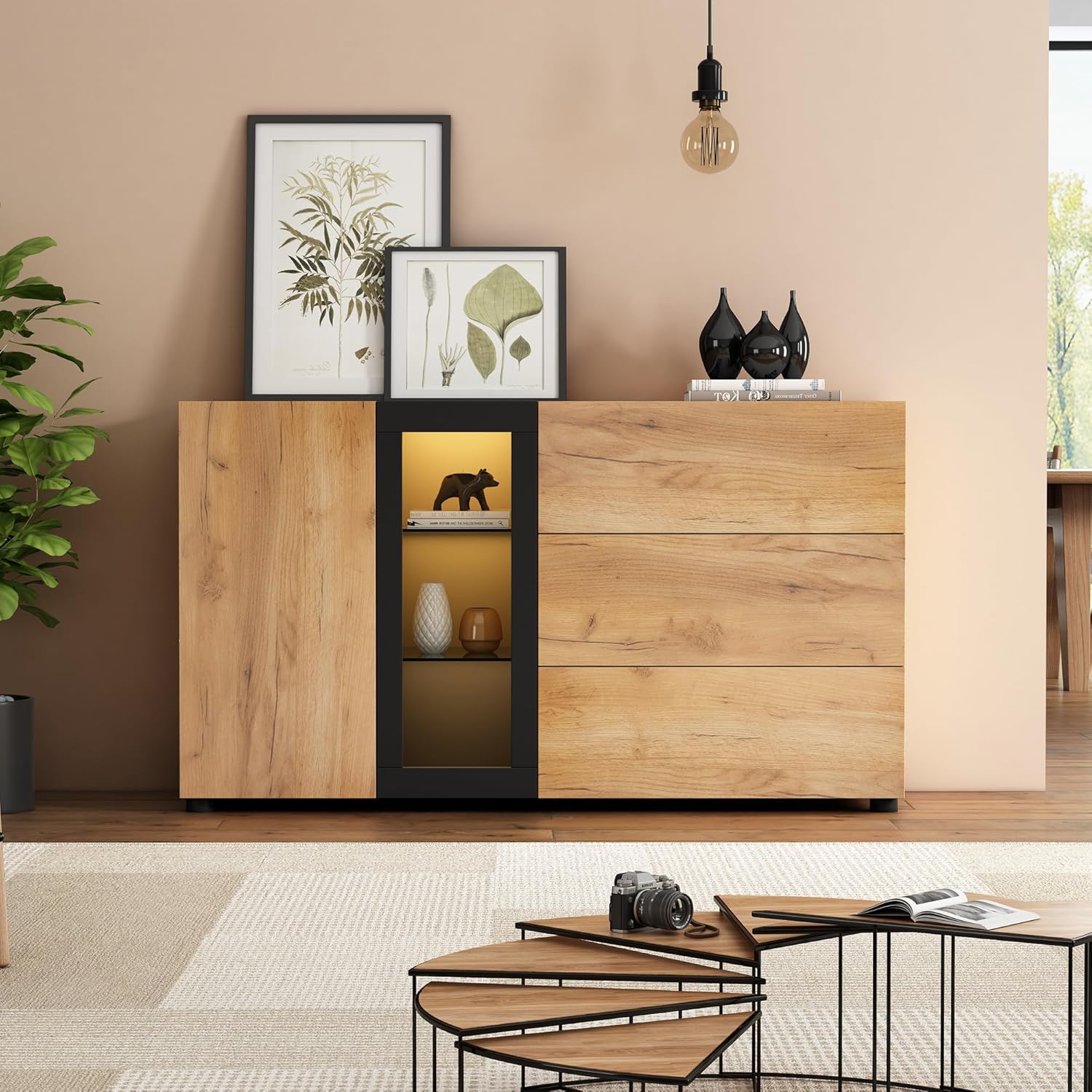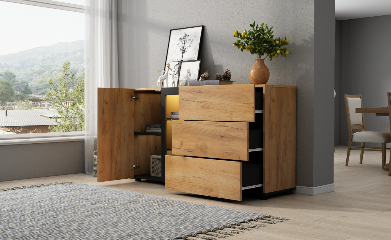 Aparador Moderno 3 Cajones 1 Puerta Luces led: Elegancia y Funcionalidad en un Solo Mueble