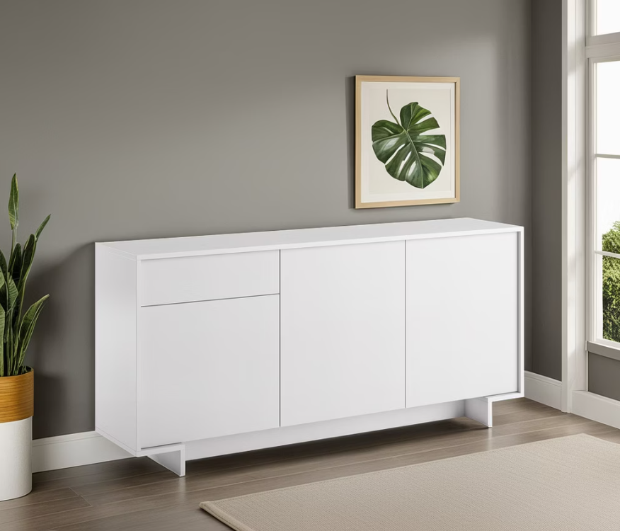 Aparador Moderno de 3 Puertas 1 Cajón y Múltiples Divisiones Color Blanco: Elegancia y Funcionalidad en un Solo Mueble