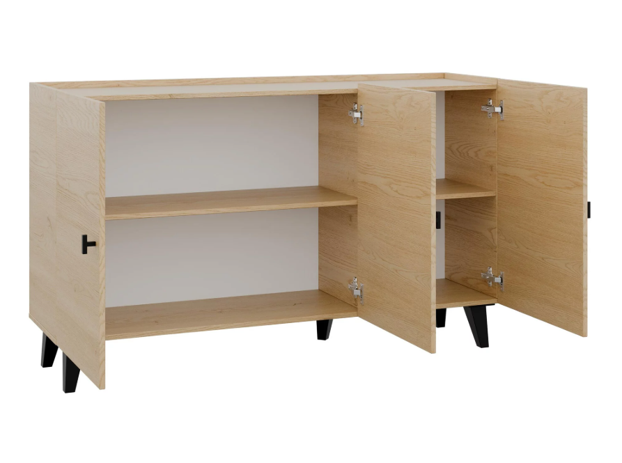 Con 3 puertas, el aparador proporciona amplio espacio de almacenamiento para libros, dispositivos multimedia y otros artículos. La robusta superficie es ideal para exhibir objetos decorativos, marcos de fotos o plantas. También se puede usar como mueble bajo, armario auxiliar, etc. Gracias al tablero de gran calidad, este aparador está diseñado para durar.