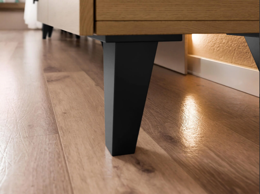 El aparador está fabricado con melamina de 18 mm de alta calidad, garantizando una gran resistencia y durabilidad. Este material no solo es robusto, sino que también es fácil de limpiar y mantener, asegurando que el mueble se mantenga en perfectas condiciones a lo largo del tiempo.