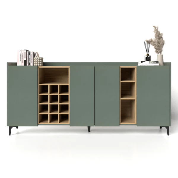 Con 4 puertas, el aparador proporciona amplio espacio de almacenamiento para libros, dispositivos multimedia y otros artículos. La robusta superficie es ideal para exhibir objetos decorativos, marcos de fotos o plantas. También se puede usar como mueble bajo, armario auxiliar, etc. Gracias al tablero de gran calidad, este aparador está diseñado para durar.