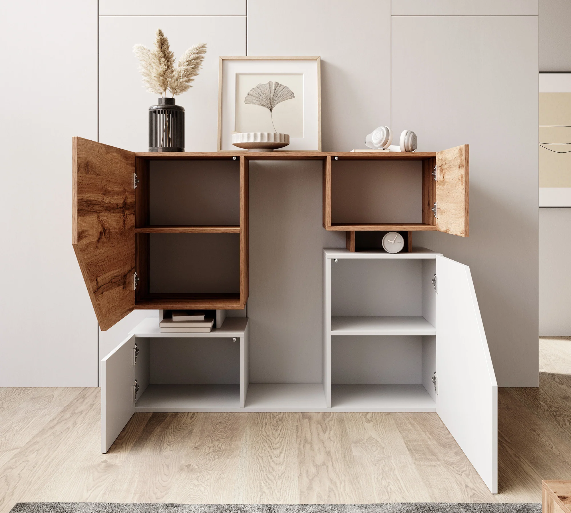 Eleva el estilo y funcionalidad de tu hogar con nuestra cómoda grande en color duna, diseñada para ofrecer un amplio espacio de almacenamiento y un toque de sofisticación. Este aparador esta equipado con 4 puertas abatibles, está fabricada con melamina de alta calidad de 18 mm y equipada con conexiones y accesorios de primera clase.