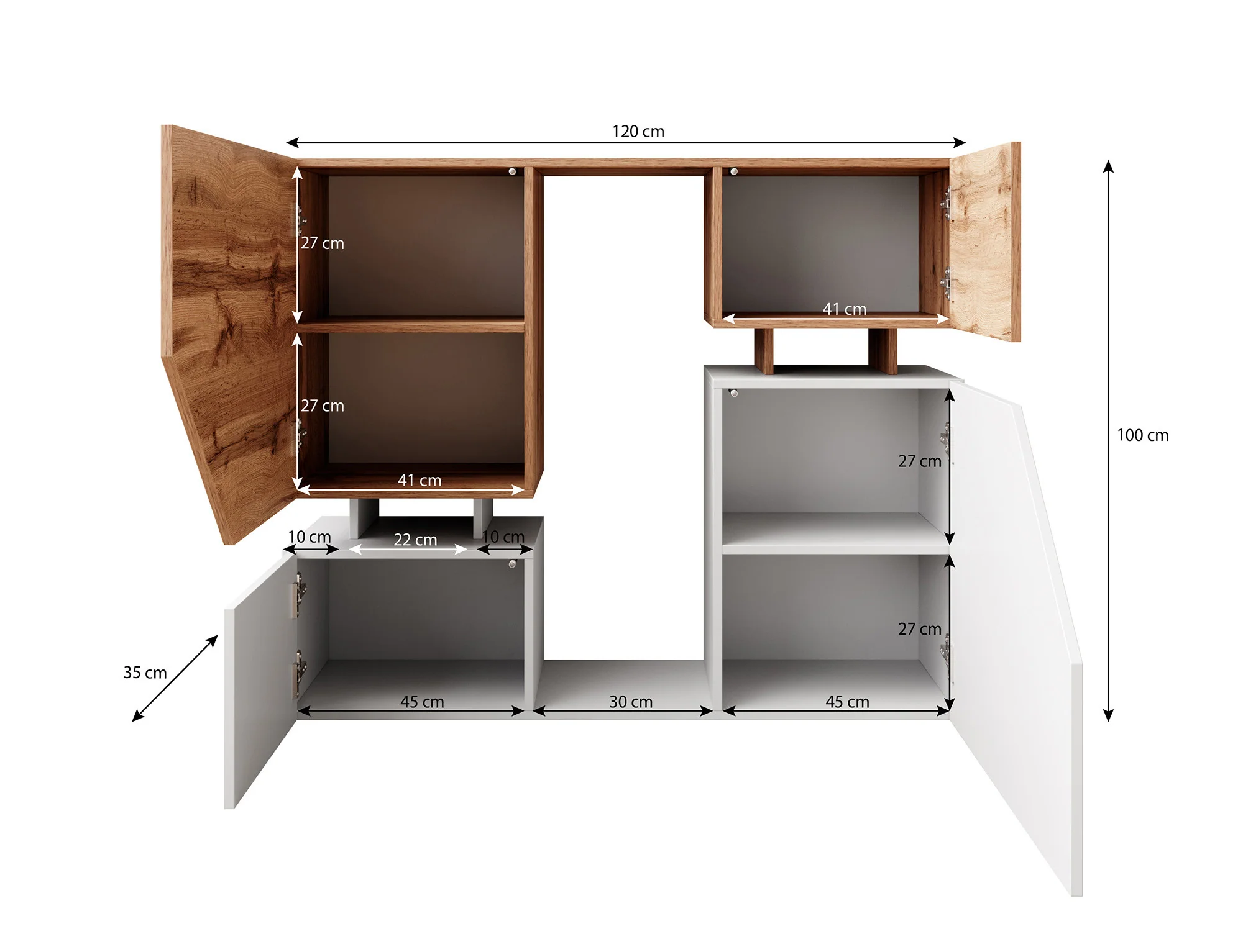Con unas medidas de 100 cm de alto, 120 cm de ancho y 35 cm de profundidad, esta cómoda es ideal para habitaciones amplias. Su diseño grande pero funcional permite maximizar el uso del espacio disponible, ofreciendo una capacidad de almacenamiento excepcional sin comprometer el estilo.