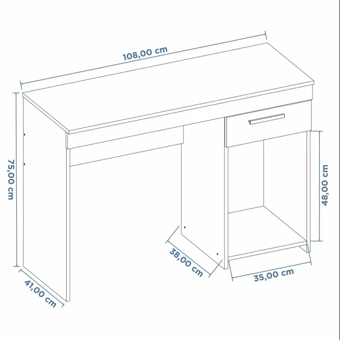Un Cajon Espaciosos: Equipado con cajon amplio, este escritorio ofrece un almacenamiento adicional ideal para guardar documentos, material de oficina y objetos personales, manteniendo su área de trabajo organizada y despejada.