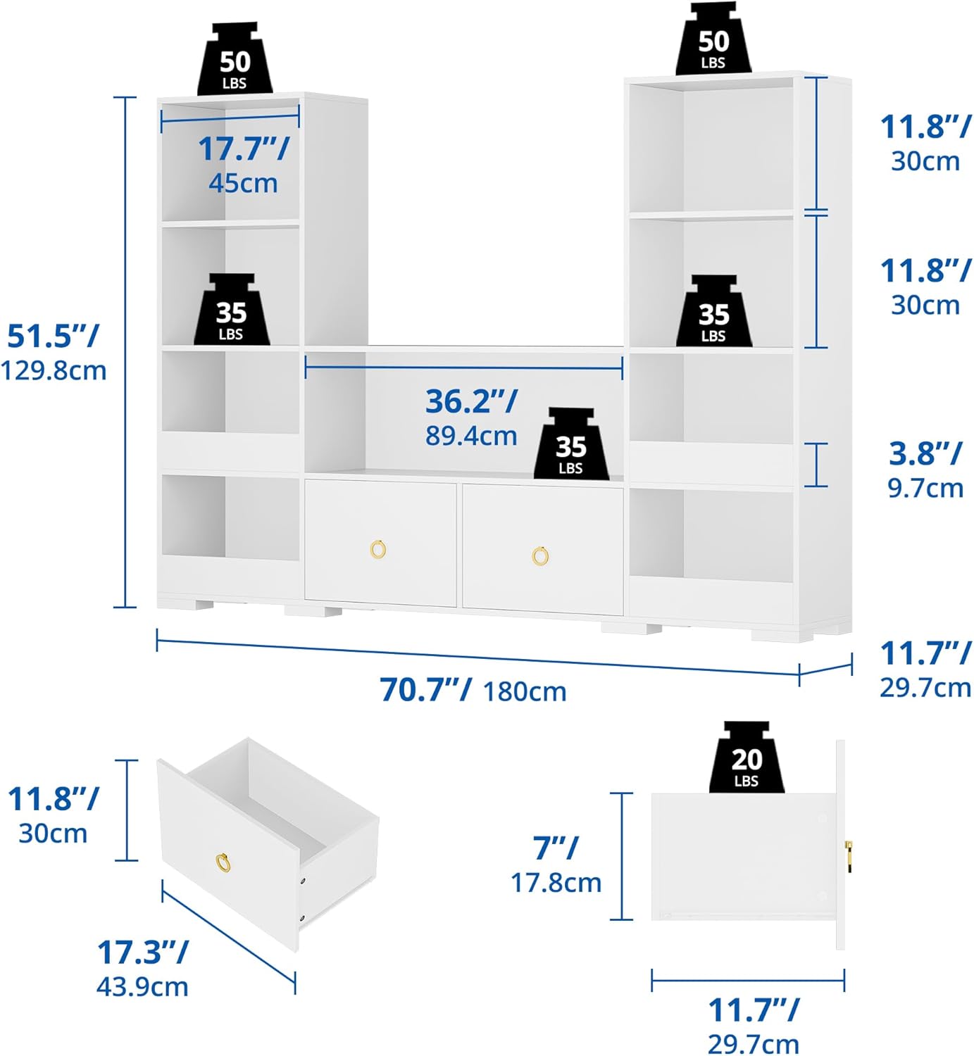 Descubre la solución perfecta para tus necesidades de almacenamiento y decoración con este estante moderno en color Blanco. Diseñado para maximizar el espacio y agregar un toque de elegancia a cualquier habitación, este mueble es una combinación ideal de estilo contemporáneo y funcionalidad. Con unas medidas de 130 cm de alto, 180 cm de largo y 29 cm de profundidad, este estante es lo suficientemente compacto para adaptarse a diferentes espacios, pero lo suficientemente amplio para ofrecer una capacidad de almacenamiento impresionante.