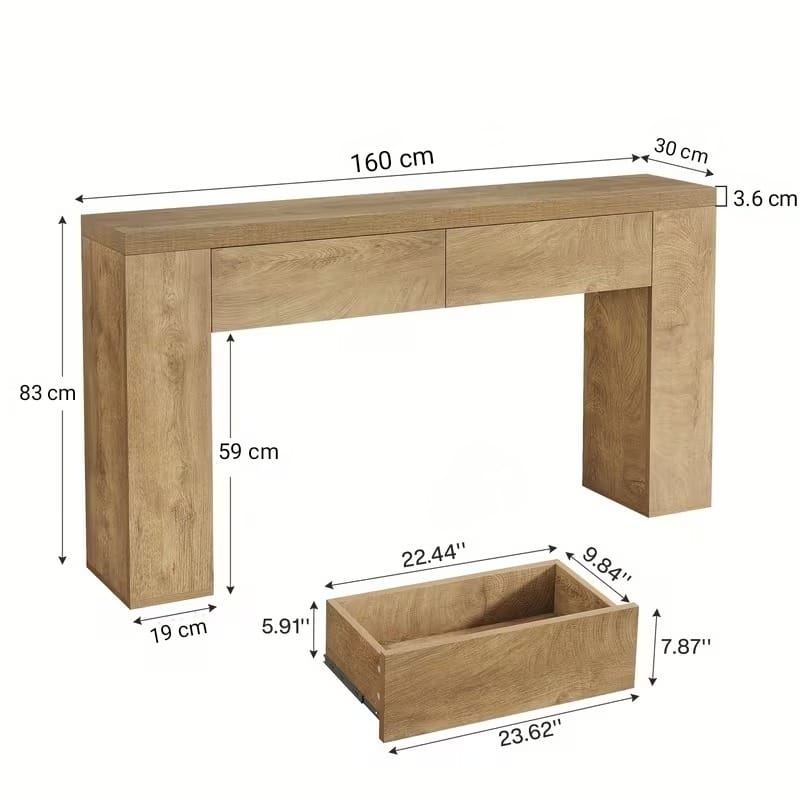El diseño de esta mesa consola perfecto para almacenar y exhibir tus objetos decorativos favoritos, libros, o incluso artículos de uso diario. Cuenta con 2 amplios cajones para guardar objetos y tener todo en orden. Este mueble no solo embellece tu hogar, sino que también maximiza el espacio disponible, manteniendo todo ordenado y accesible.
